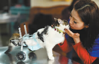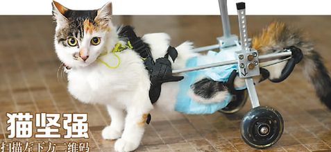 黑蝴蝶不是蝴蝶,而是一只8個(gè)月大的母貓咪。去年11月,它從10多米高空摔下,在寵物醫(yī)院先后接受了4次大手術(shù)才得以保住性命。如今,它的兩條后腳喪失了行走能力。因?yàn)槊娌亢蜕眢w的毛是黑色,救它的人把它喚作黑蝴蝶。 意外發(fā)生后,不斷有好心人來(lái)幫助黑蝴蝶。上周,在重慶生活的美國(guó)人Alison(艾莉森)聽(tīng)說(shuō)了黑蝴蝶的故事,她和女兒也加入到拯救黑蝴蝶的行動(dòng)中。 半年4次大手術(shù)生命力頑強(qiáng) 昨日上午11時(shí)許,重慶晚報(bào)記者在渝北區(qū)和美寵物醫(yī)院見(jiàn)到黑蝴蝶。由于它瘦小體弱,寵物醫(yī)院院長(zhǎng)程宇特地把它放在辦公室,以便隨時(shí)照顧。 見(jiàn)有生人來(lái),瘦小的黑蝴蝶一直把頭往被子里縮。程宇把它抱出來(lái),撫摸它,幫它后肢套上滑輪,并用食物鼓勵(lì)它行走。黑蝴蝶有2公斤重,滑輪幾乎是它體重的三分之一。套上滑輪后,黑蝴蝶兩只前肢在不住顫抖,卻又努力地一步步往前挪。走幾步后,它停下來(lái)休息一會(huì),又站起來(lái),繼續(xù)往前走。 “它還在逐步恢復(fù),但每天都需要鍛煉前肢,讓前肢發(fā)達(dá)起來(lái)?!背逃钫f(shuō),去年11月19日,一名女士把一只小貓咪送到寵物醫(yī)院。對(duì)方告訴程宇,兩天前,在九龍坡區(qū)石橋鋪一家小區(qū),貓咪被人踩到后,從9樓掉到5樓。 “去年,我們先后給貓做了3次大手術(shù):脾臟切除、腎臟切除、膀胱肝臟修補(bǔ)?!背逃钫f(shuō),今年3月它又突然腮幫腫大。為保命,黑蝴蝶在3月8日又接受了舌下腺囊腫切除術(shù),目前健康狀況良好。 程宇說(shuō),前后4次手術(shù),加上去年摔傷造成的腰椎斷裂,兩只后腿徹底失去走路能力,它也因此不會(huì)用貓爪清理自己的糞便,所以每天都要使用尿不濕。 “黑蝴蝶從10多米高處摔下,應(yīng)該是左腰部和兩后肢落地,能活下來(lái)就已是萬(wàn)幸,更不要說(shuō)半年就接受4次大手術(shù)。它是我從事獸醫(yī)工作10多年來(lái),治療過(guò)的生命力最頑強(qiáng)的小動(dòng)物?!背逃钫f(shuō)。 美國(guó)太太每天陪它康復(fù)訓(xùn)練 “那名女士為救黑蝴蝶前后花了1萬(wàn)多元,還送來(lái)一個(gè)機(jī)械滑輪。”程宇說(shuō),她們希望能讓更多人來(lái)關(guān)愛(ài)這只堅(jiān)強(qiáng)的貓咪。昨日,重慶晚報(bào)聯(lián)系上這名女士,“希望大家不只關(guān)注它,也能多關(guān)愛(ài)那些流浪貓狗?!彼辉敢馔嘎缎彰?。 程宇說(shuō),上周,她把黑蝴蝶的故事講給經(jīng)常來(lái)寵物醫(yī)院的美國(guó)客人艾莉森聽(tīng)?!鞍蛏瓗缀趺刻於紩?huì)來(lái)陪伴黑蝴蝶做康復(fù)訓(xùn)練?!背逃钫f(shuō):“艾莉森自己腰椎也有問(wèn)題,每天都會(huì)陪黑蝴蝶練習(xí)用機(jī)械滑輪走路?!?/p> 昨下午,艾莉森對(duì)重慶晚報(bào)記者說(shuō),自己是全職太太,丈夫是汽車工程師,2年前她隨丈夫來(lái)重慶生活。8歲女兒Claire(克萊爾)在重慶一所國(guó)際小學(xué)讀二年級(jí)。如今,艾莉森家里還養(yǎng)著4只流浪貓狗。 當(dāng)艾莉森知道黑蝴蝶遭遇后,她當(dāng)即在自己的Facebook(臉書(shū))上發(fā)了求助微信,希望在重慶的美國(guó)朋友可以領(lǐng)養(yǎng)黑蝴蝶。 美國(guó)小女孩想給貓咪找個(gè)家 上周末,艾莉森把女兒及其兩個(gè)同學(xué)也帶到寵物醫(yī)院。3個(gè)美國(guó)女孩看到黑蝴蝶后,主動(dòng)向程宇借了處方簽,為黑蝴蝶開(kāi)起“處方”。重慶晚報(bào)記者看到,克萊爾在處方簽上寫著:“黑蝴蝶從17樓摔到了5樓,現(xiàn)在它在坐輪椅,請(qǐng)收留它?!背逃罱忉?,克萊爾應(yīng)該是聽(tīng)錯(cuò)了黑蝴蝶摔倒的樓層高,所以寫錯(cuò)了情況。類似的求助宣傳語(yǔ)在寵物醫(yī)院仍能找到。 艾莉森說(shuō),女兒告訴她,黑蝴蝶的機(jī)械滑輪太重了,長(zhǎng)度似乎不太適合它,需要改進(jìn)?!拔覍?duì)我8歲女兒感到非常自豪?!卑蛏f(shuō),在家里,克萊爾會(huì)主動(dòng)照顧4只貓狗,協(xié)助自己幫它們洗澡、喂食、遛狗等。救助這些小動(dòng)物,克萊爾會(huì)比同齡人多一份責(zé)任心與耐心,對(duì)陌生人也更友善和開(kāi)朗。 “我要盡最大努力去幫助黑蝴蝶?!笨巳R爾說(shuō),她會(huì)發(fā)動(dòng)班上同學(xué)來(lái)關(guān)愛(ài)黑蝴蝶,讓黑蝴蝶盡快有一個(gè)屬于自己的家。重慶晚報(bào)首席記者 郝瑤 冉文 攝影報(bào)道